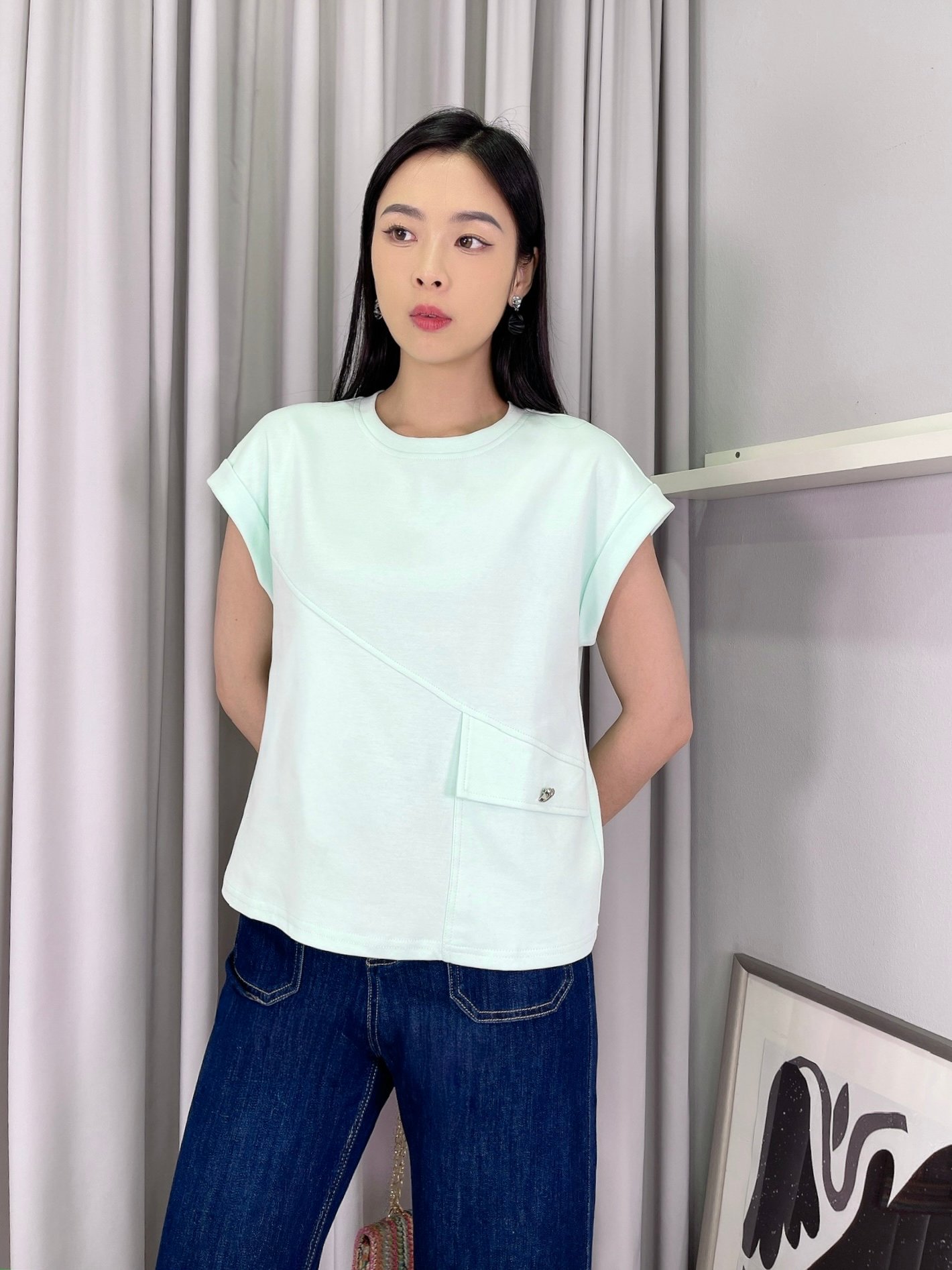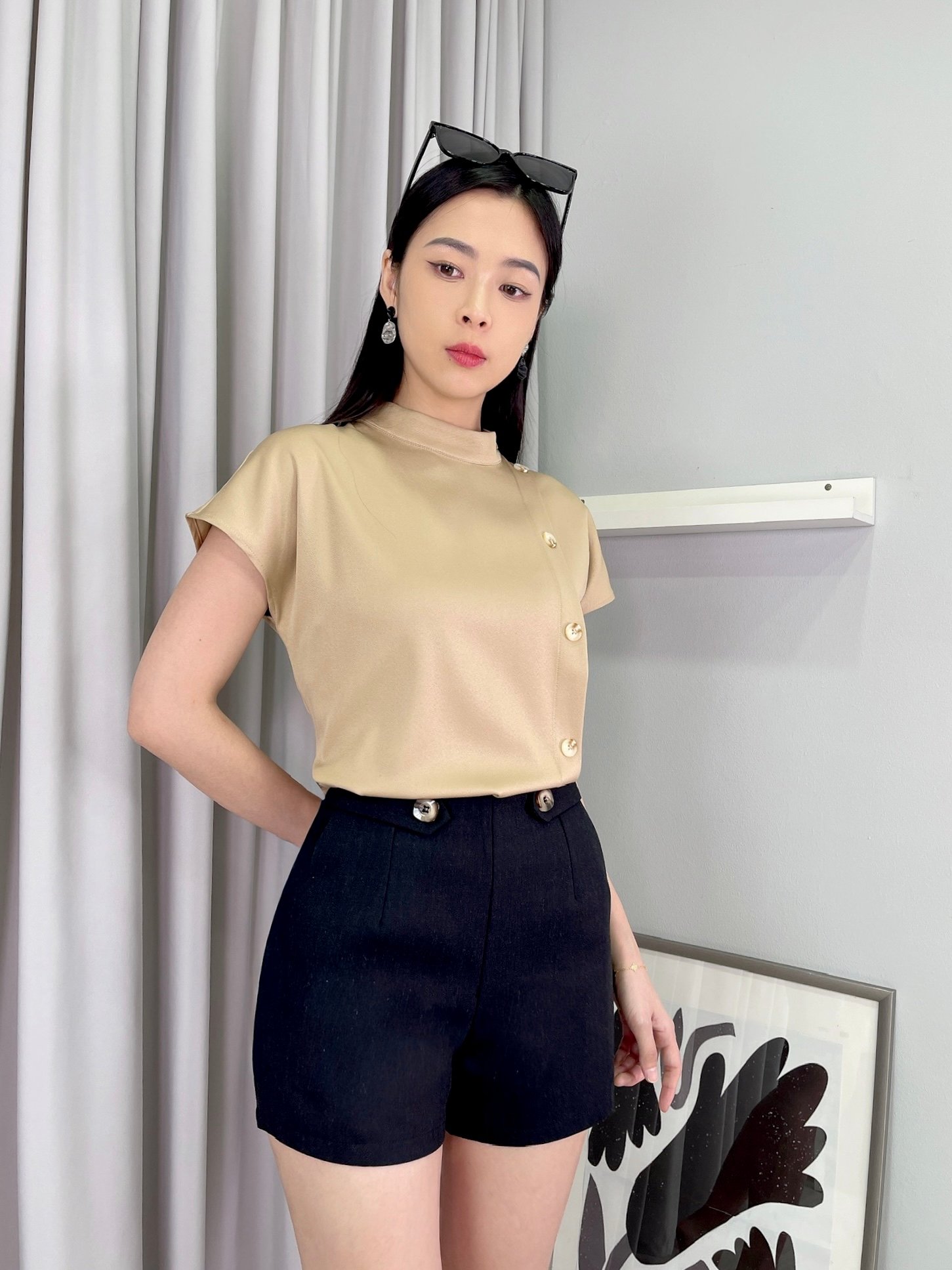 30589 Asymmetrical Button Accent Top