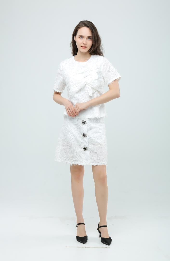 E818BB Textured Bow Accent Top