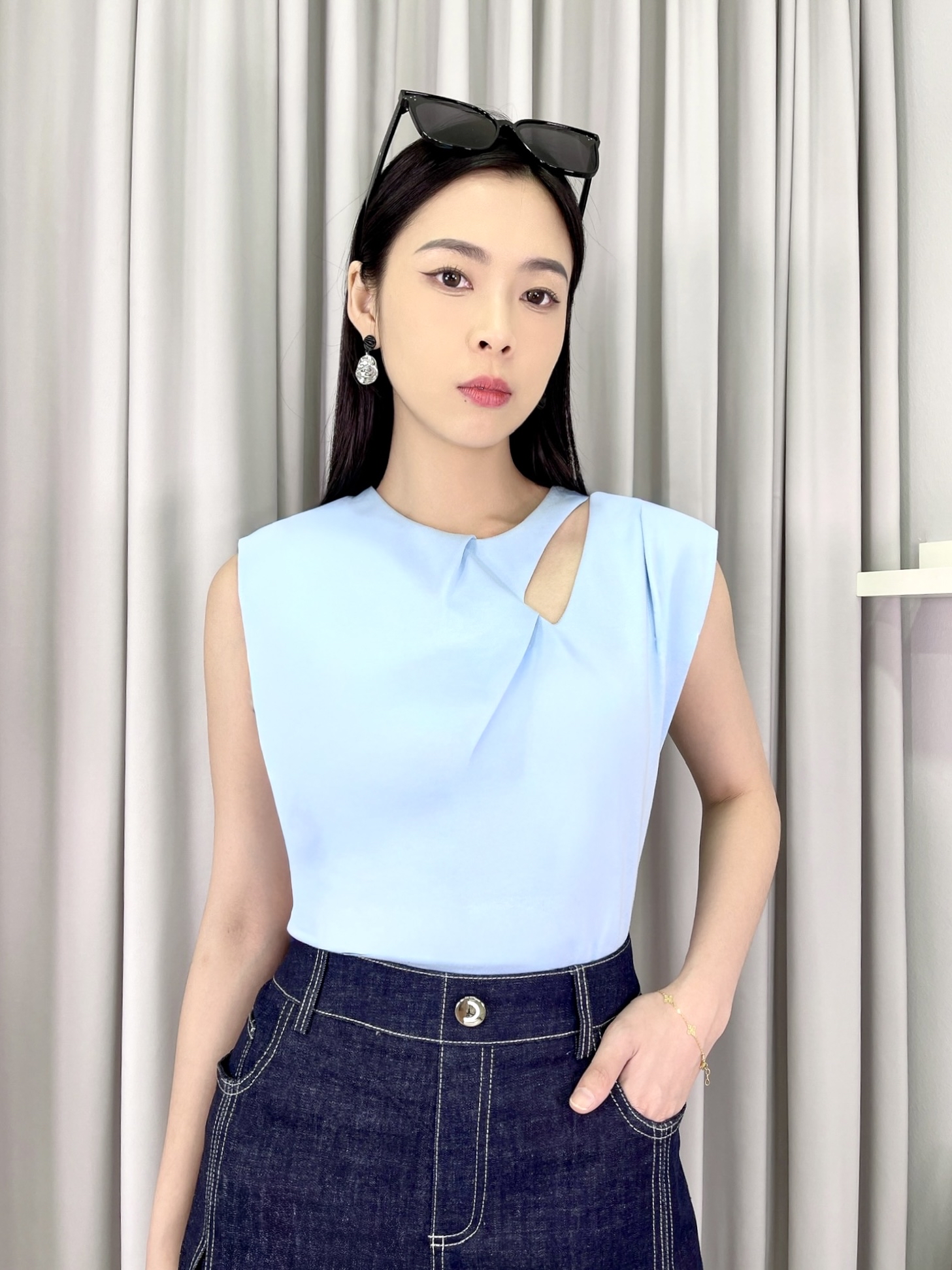 CB2380 Asymmetrical Cut-Out Shoulder Top