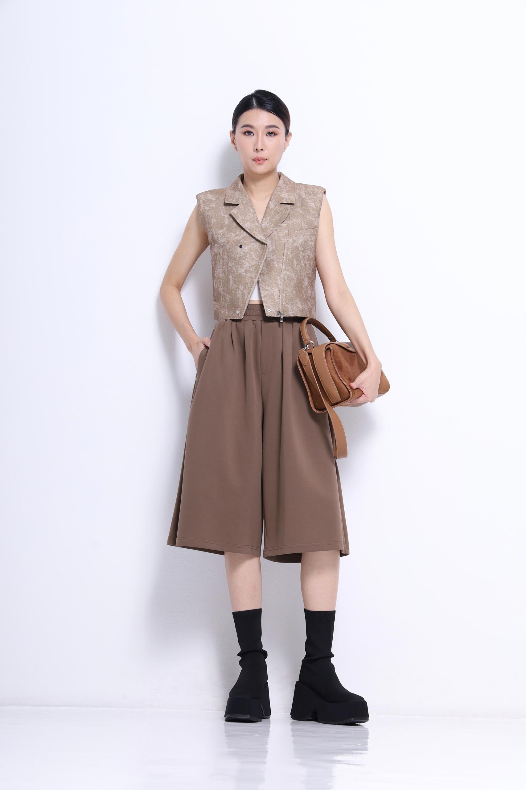A structured vest designed with a clean tailored cut and subtle textured fabric. Featuring a sharp lapel neckline and a cropped silhouette, this piece adds a modern edge while maintaining a refined, polished look. Perfect worn on its own or layered for effortless styling.